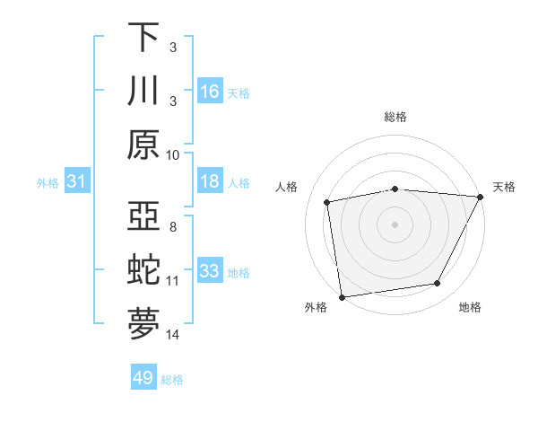 下川原 亞蛇夢さんを姓名の画数から五運を鑑定