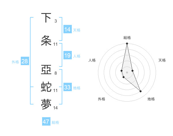 下条 亞蛇夢さんの総格は47画の5点!