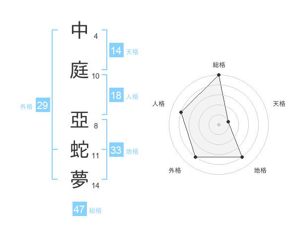 中庭 亞蛇夢さんの総格は47画の5点!