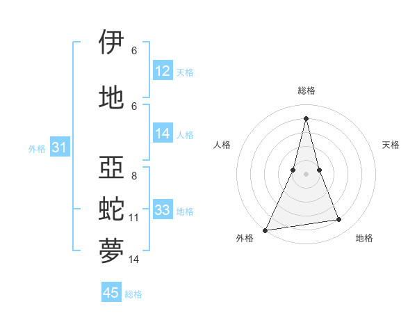 伊地 亞蛇夢さんの総格は45画の4点!