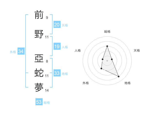 前野 亞蛇夢さんを姓名の画数から五運を鑑定