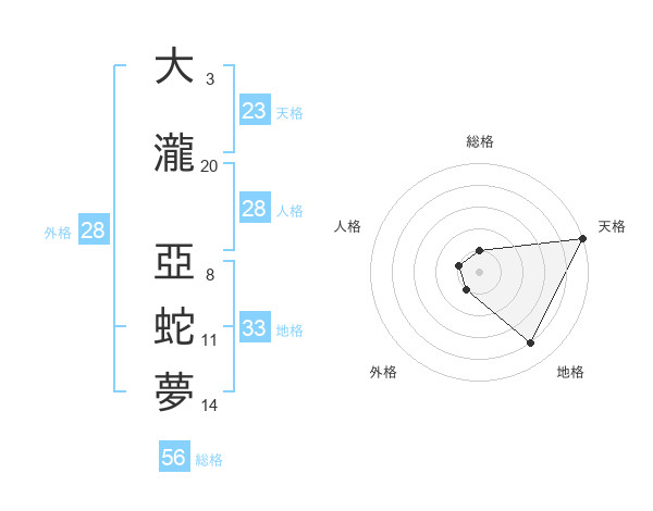 大瀧 亞蛇夢さんの天格は23画の5点!