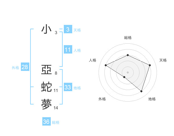 小 亞蛇夢さんを姓名の画数から五運を鑑定