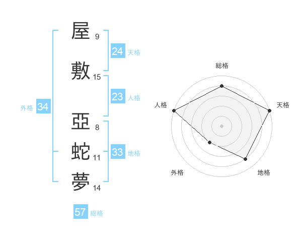 屋敷 亞蛇夢さんの総格は57画の4点!