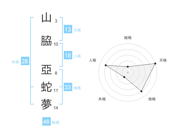 山脇 亞蛇夢さんを姓名の画数から五運を鑑定