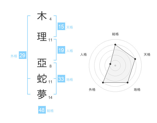 木理 亞蛇夢さんの総格は48画の4点!