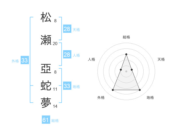 松瀬 亞蛇夢さんの総格は61画の3点!