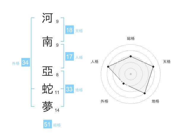 河南 亞蛇夢さんを姓名の画数から五運を鑑定