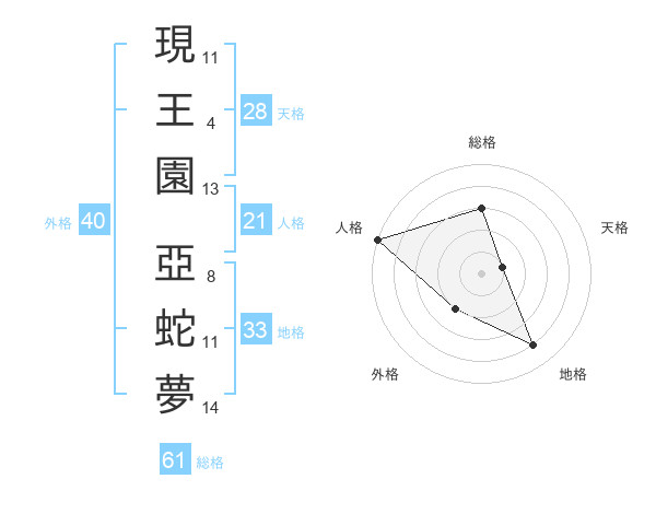 現王園 亞蛇夢さんの総格は61画の3点