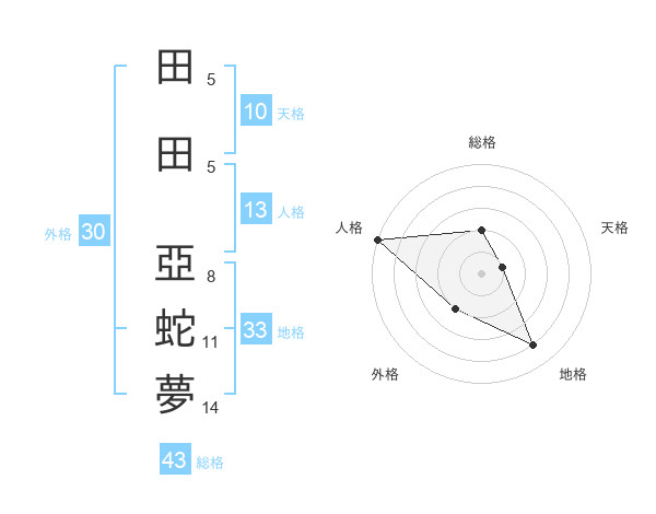 田田 亞蛇夢さんを姓名の画数から五運を鑑定