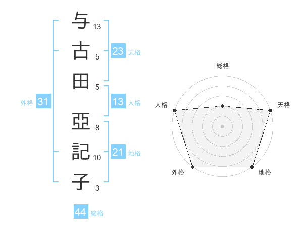 与古田 亞記子さんを姓名の画数から五運を鑑定