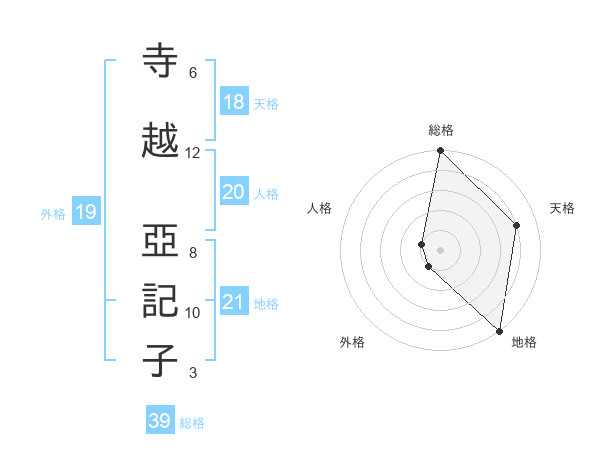 寺越 亞記子さんを姓名の画数から五運を鑑定