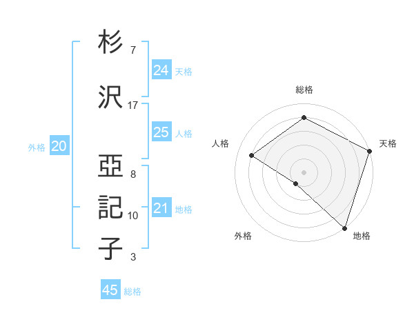 杉沢 亞記子さんの天格は24画の5点!