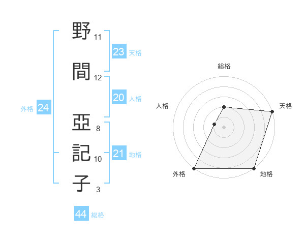 野間 亞記子さんの外格は24画の5点!