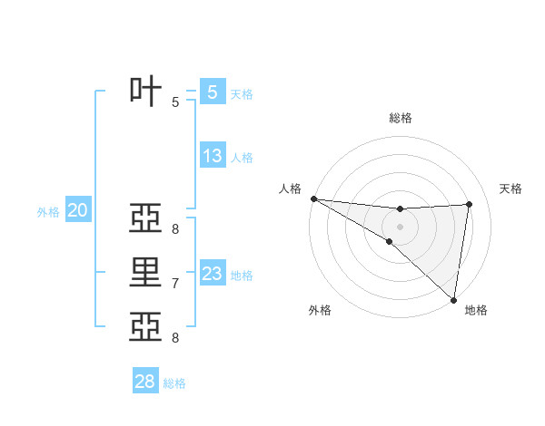 叶 亞里亞さんを姓名の画数から五運を鑑定