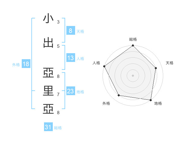 小出 亞里亞さんの総格は31画の5点!