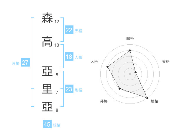 森高 亞里亞さんの総格は45画の4点!