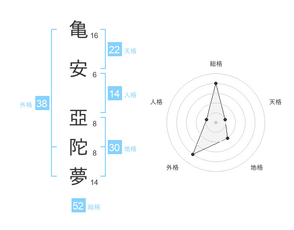 亀安 亞陀夢さんの総格は52画の4点!