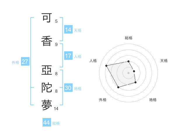 可香 亞陀夢さんの総格は44画の2点!