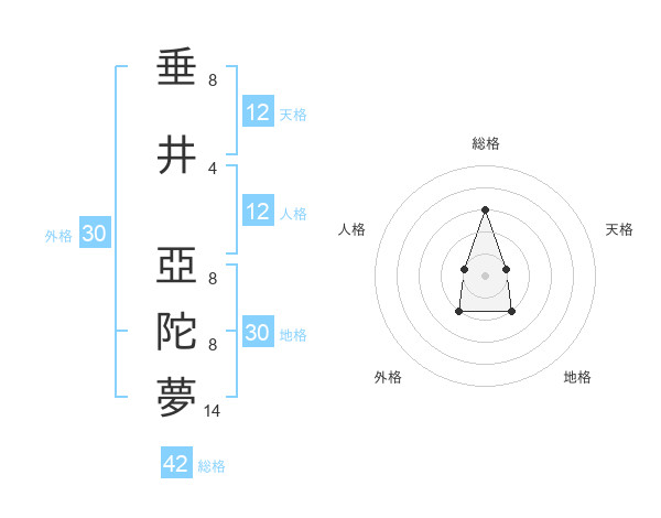 垂井 亞陀夢さんの地格は30画の2点!