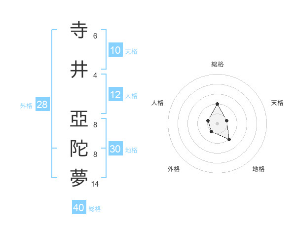 寺井 亞陀夢さんの総格は40画の2点!