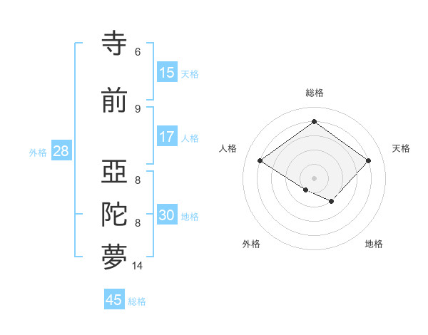 寺前 亞陀夢さんの天格は15画の4点!