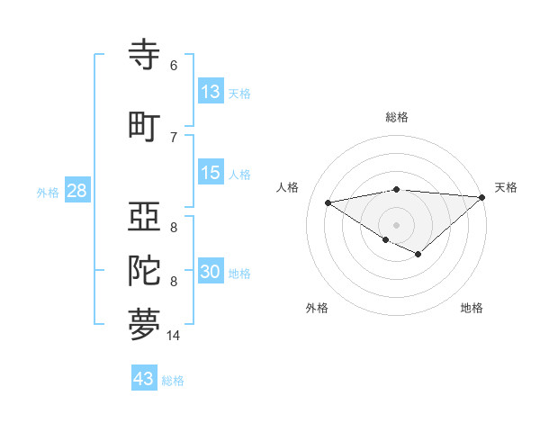 寺町 亞陀夢さんを姓名の画数から五運を鑑定