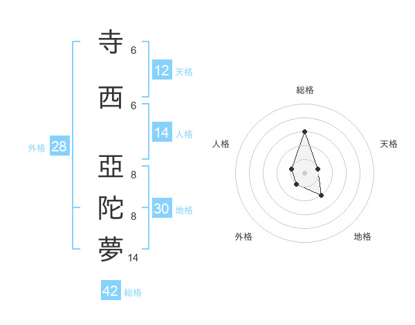 寺西 亞陀夢さんを姓名の画数から五運を鑑定