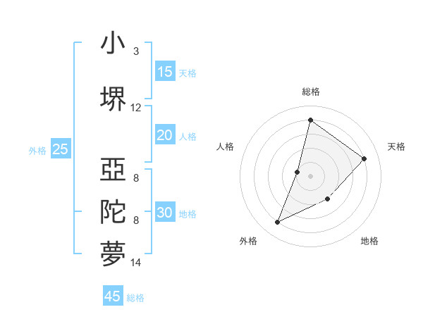 小堺 亞陀夢さんの外格は25画の4点!