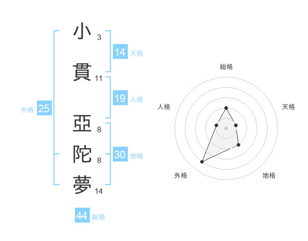 小貫 亞陀夢さんを姓名の画数から五運を鑑定
