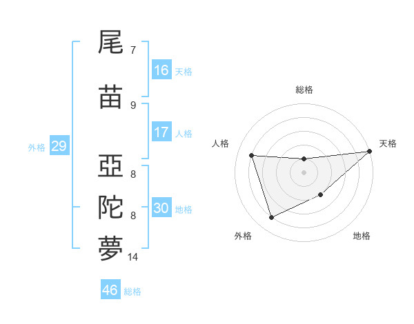 尾苗 亞陀夢さんの外格は29画の4点!