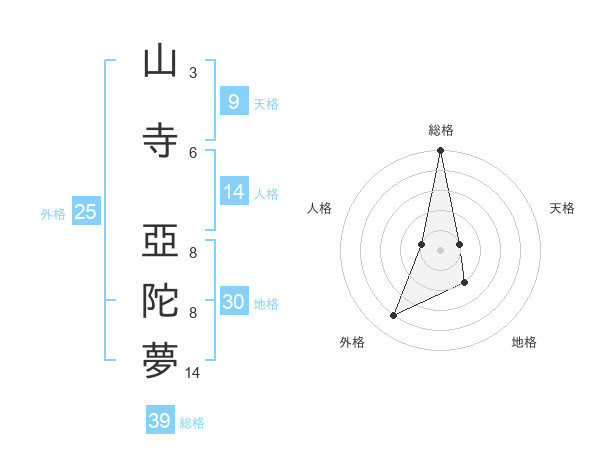 山寺 亞陀夢さんの総格は39画の5点!