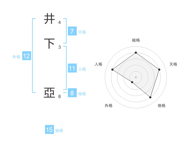 井下 亞さんの総格は15画の4点!