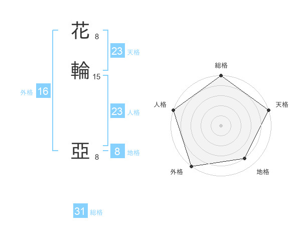 花輪 亞さんの総格は31画の5点!