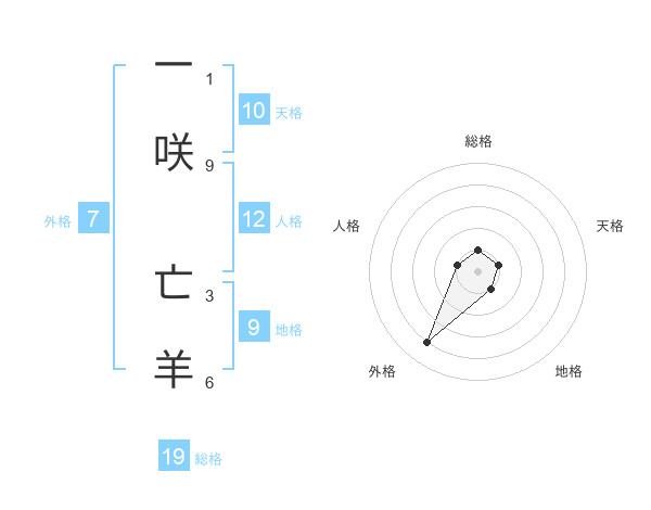 一咲 亡羊さんを姓名の画数から五運を鑑定