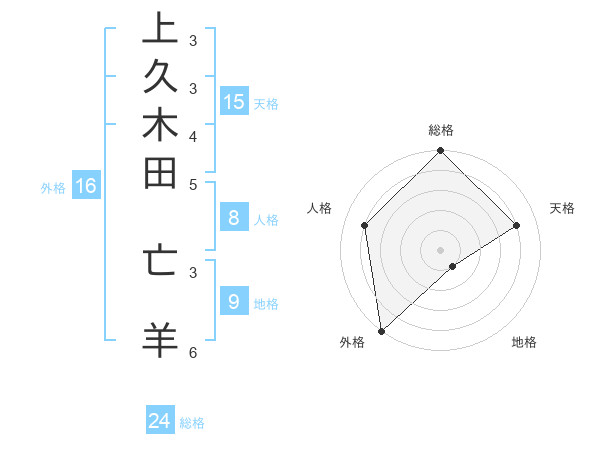 上久木田 亡羊さんの外格は16画の5点