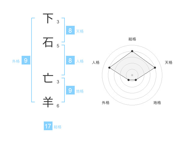 下石 亡羊さんの天格は8画の4点!