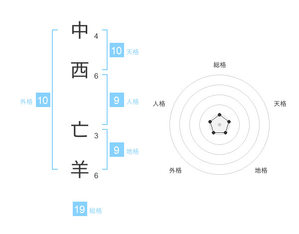 中西 亡羊さんを姓名の画数から五運を鑑定