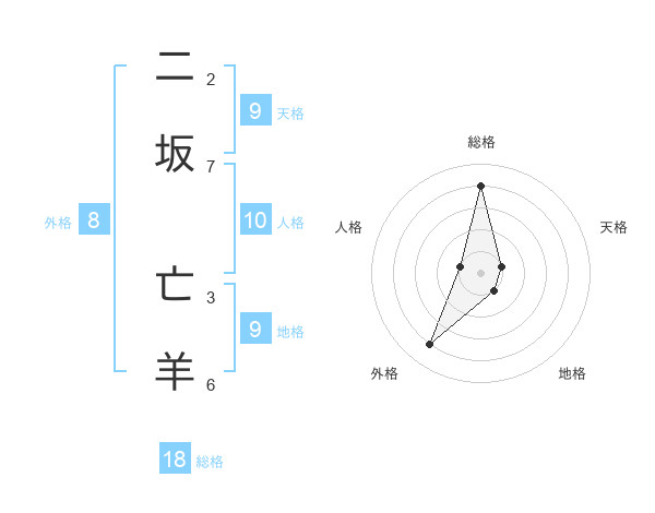 二坂 亡羊さんの総格は18画の4点!