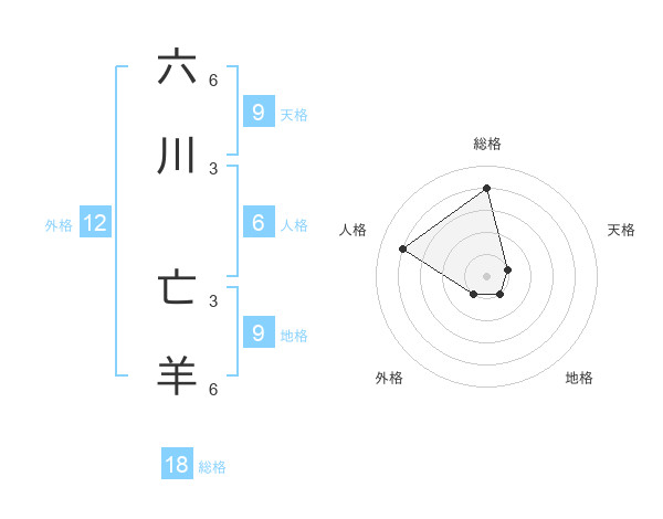 六川 亡羊さんを姓名の画数から五運を鑑定