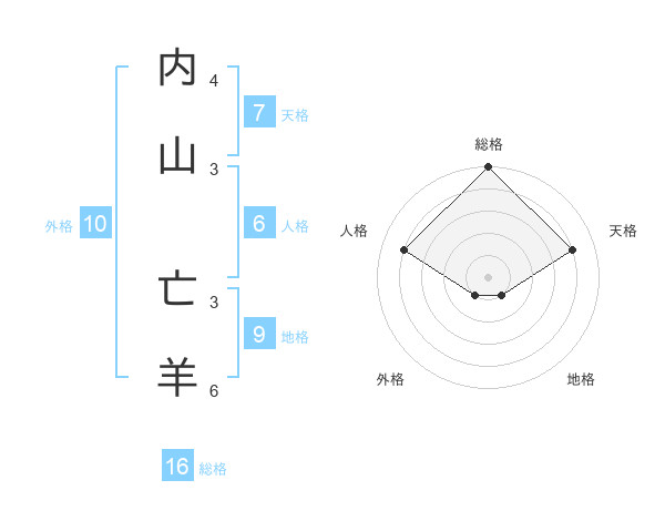 内山 亡羊さんの総格は16画の5点!