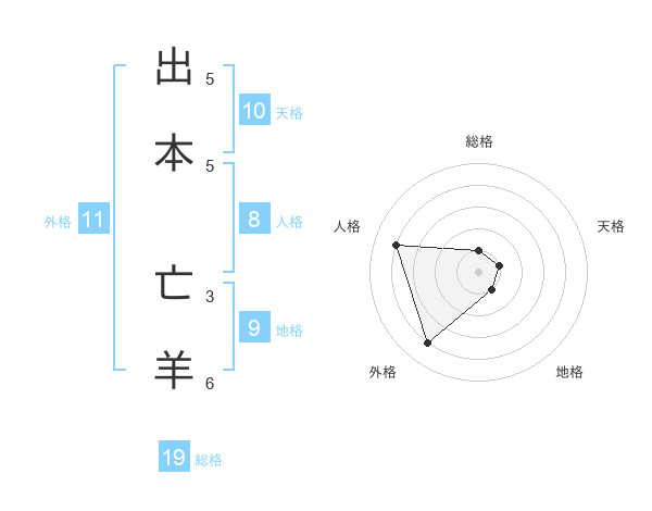 出本 亡羊さんを姓名の画数から五運を鑑定
