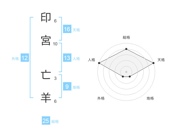 印宮 亡羊さんの天格は16画の5点!