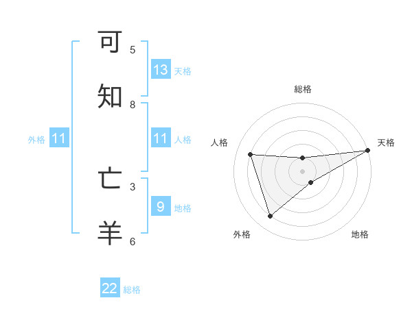 可知 亡羊さんの総格は22画の1点!