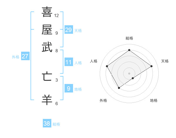 喜屋武 亡羊さんを姓名の画数から五運を鑑定
