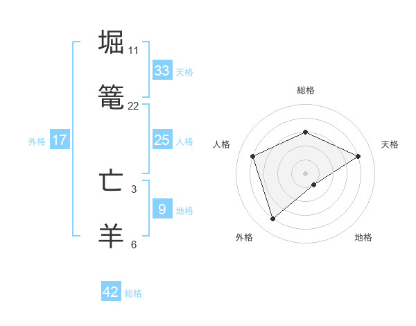 堀篭 亡羊さんを姓名の画数から五運を鑑定