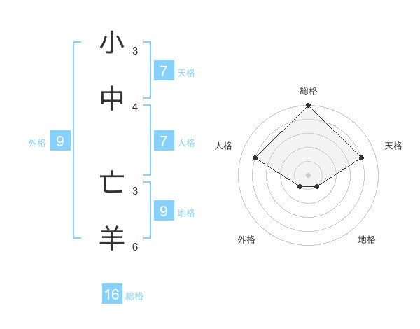 小中 亡羊さんを姓名の画数から五運を鑑定