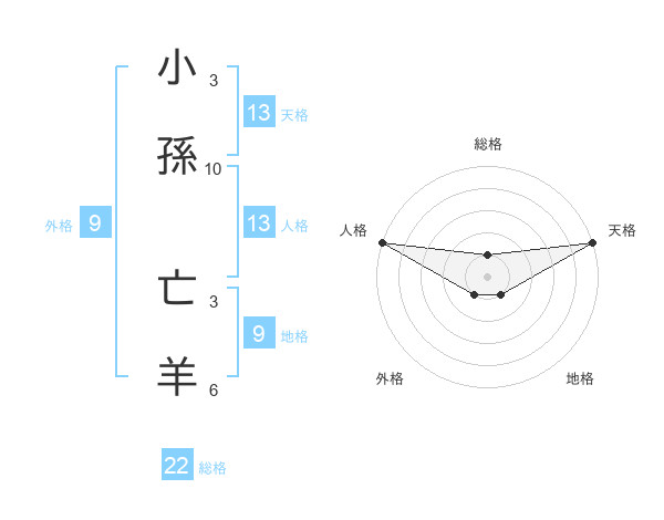 小孫 亡羊さんの天格は13画の5点!