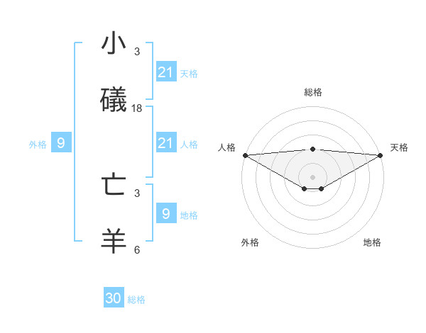 小礒 亡羊さんの総格は30画の2点!