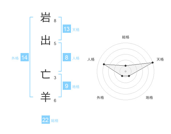 岩出 亡羊さんの総格は22画の1点!